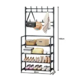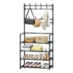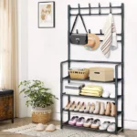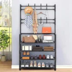 Profitez d’organiser votre entrée avec style grâce à ce porte-manteaux et chaussures à 4 niveaux. Il présente une conception 3-en-1 qui comprend un porte-manteau, des étagères à chaussures et des emplacements pour suspendre des chapeaux, des sacs et des parapluies. Fabriqué dans un matériau noir de haute qualité, il ajoute une touche esthétique à n’importe quel espace. Convient pour l’entrée, la chambre ou tout espace nécessitant de l’organisation.