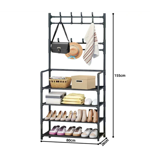 Profitez d’organiser votre entrée avec style grâce à ce porte-manteaux et chaussures à 4 niveaux. Il présente une conception 3-en-1 qui comprend un porte-manteau, des étagères à chaussures et des emplacements pour suspendre des chapeaux, des sacs et des parapluies. Fabriqué dans un matériau noir de haute qualité, il ajoute une touche esthétique à n’importe quel espace. Convient pour l’entrée, la chambre ou tout espace nécessitant de l’organisation.